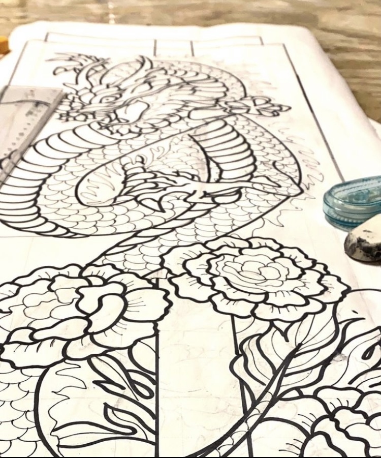 「龍」のリクエストでしたが、私の描く龍は美しく、そして華やかにしたいと考えていました。