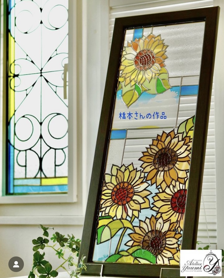 ひまわりの作品です。配色もとっても素敵です。教室の皆さんのお手本になるような素晴らしい仕上がりです。写真ではわかりにくいですが、細かい工夫もある作品です。