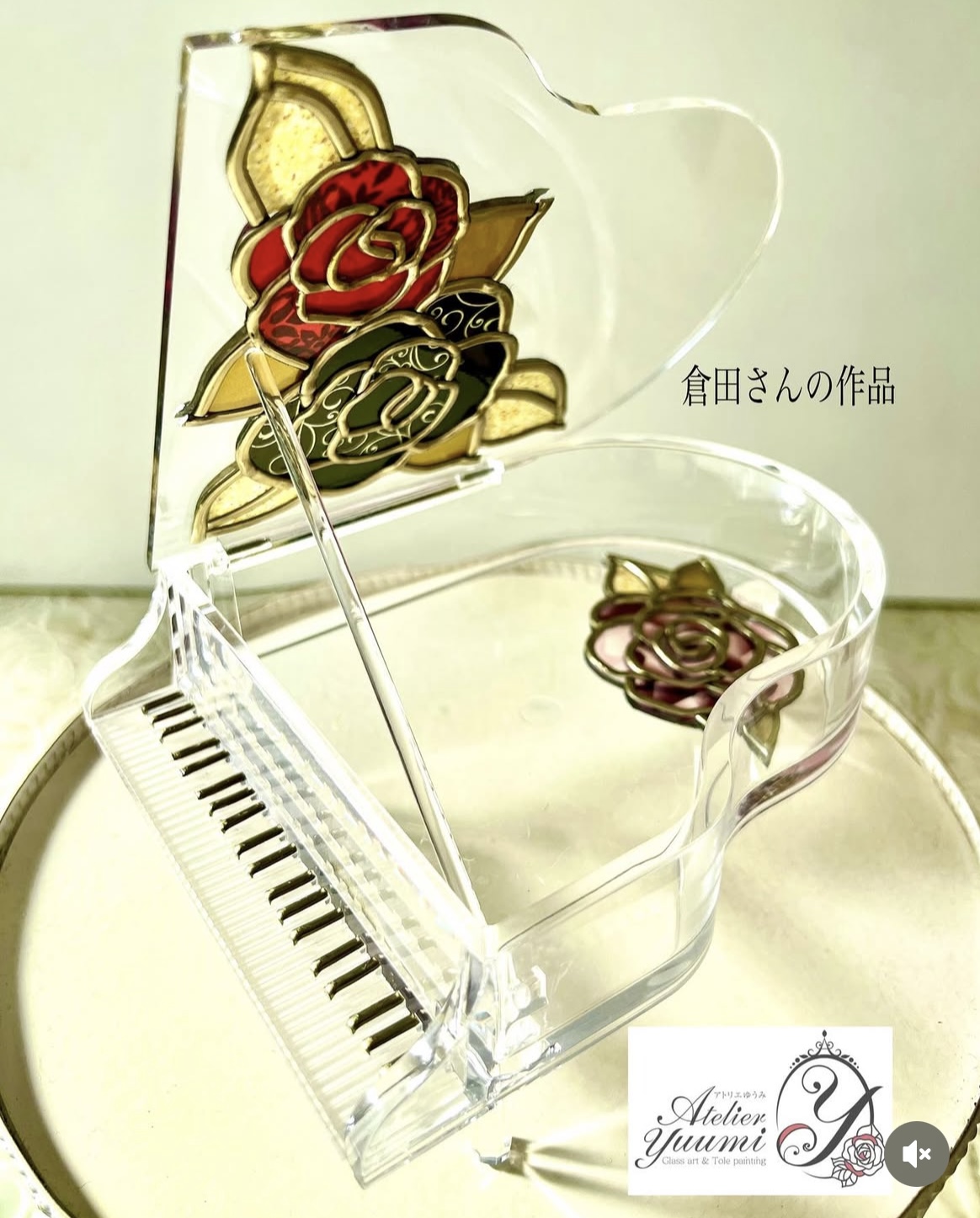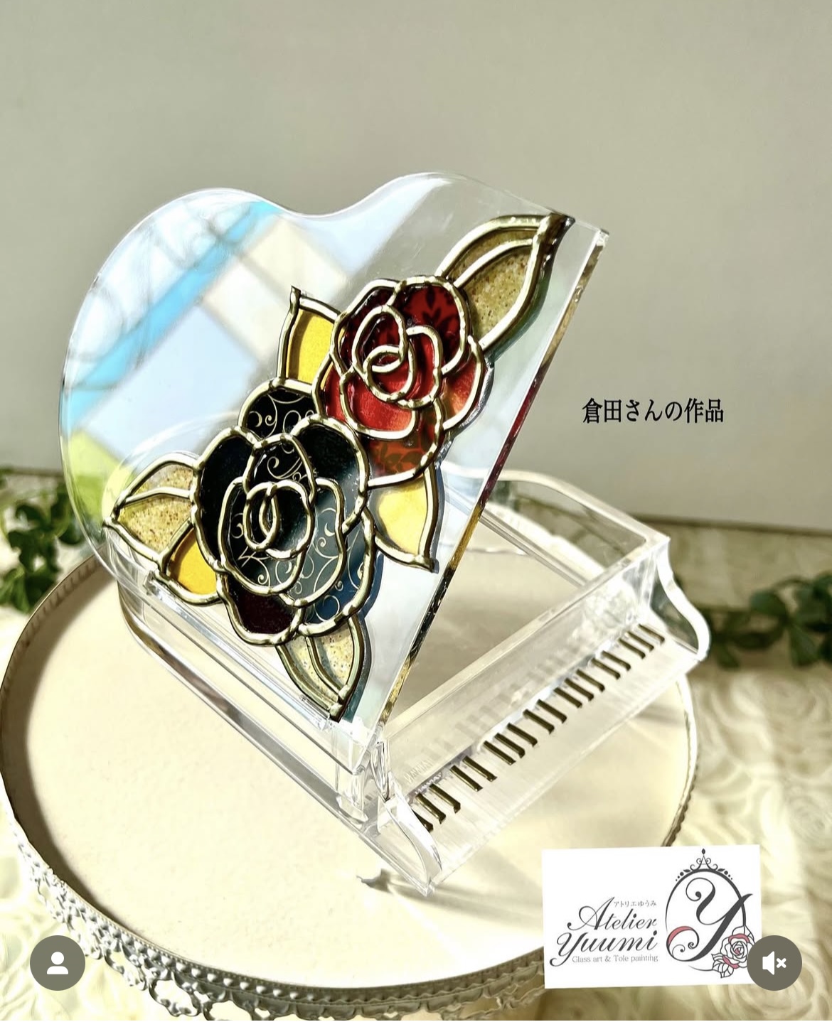 アトリエゆうみはグラスアートだけでなく、トールペイントの作品も作る事ができます。2つを融合させた作品も作る事ができます。