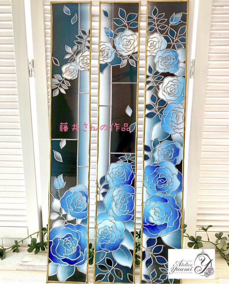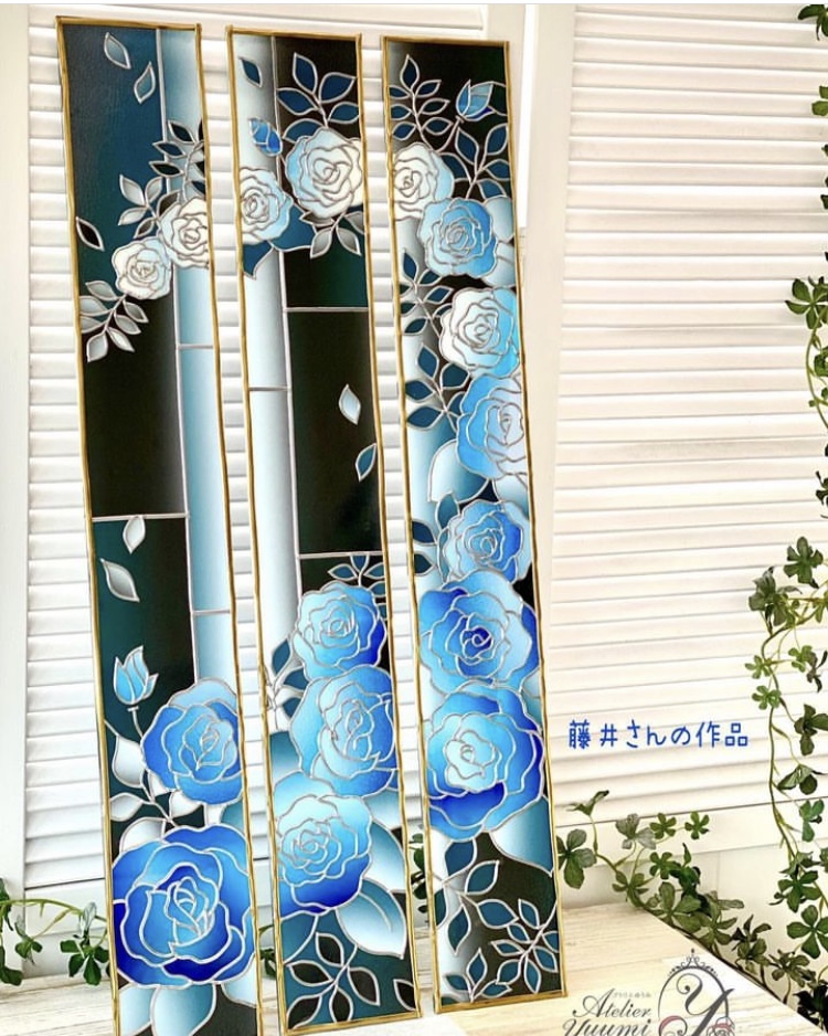 グラスアートはステンドグラスの雰囲気をそのままにシール状のフィルムとリード線を切ったり貼ったりして手軽に楽しめるクラフトです。