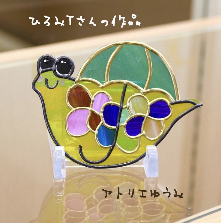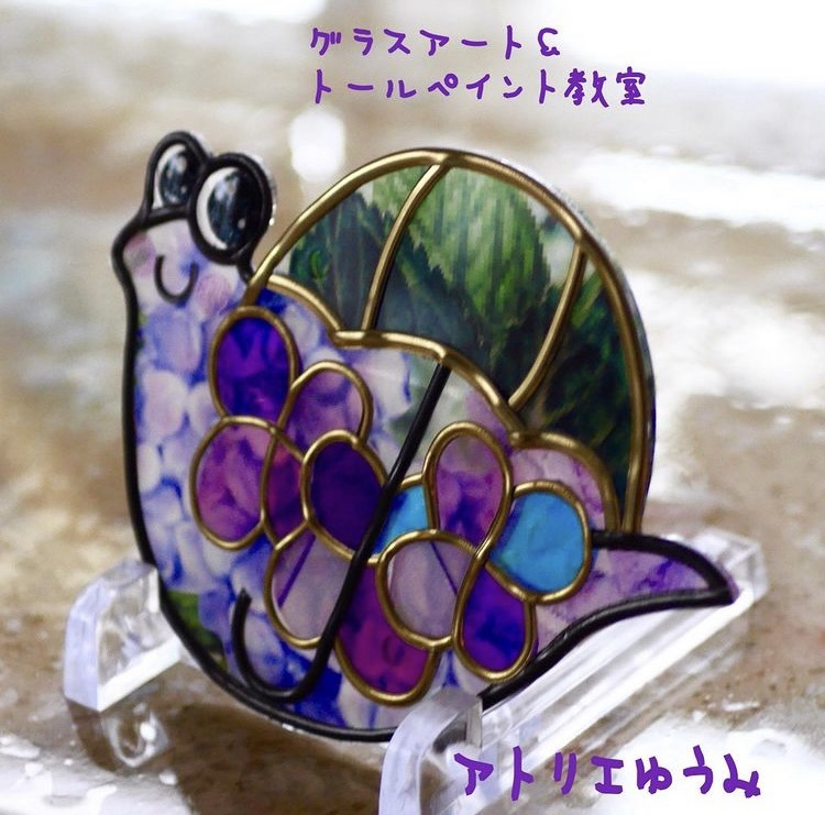 雨が続く梅雨の季節にぴったりなグラスアートのでんでん虫の作品を紹介します。