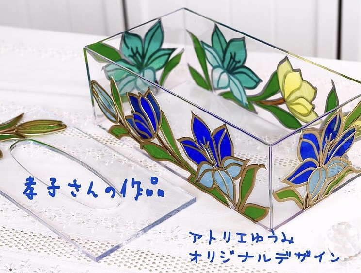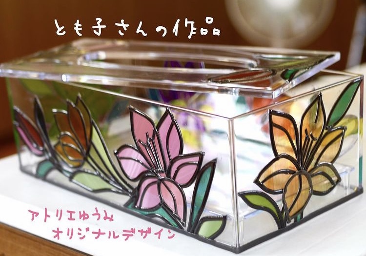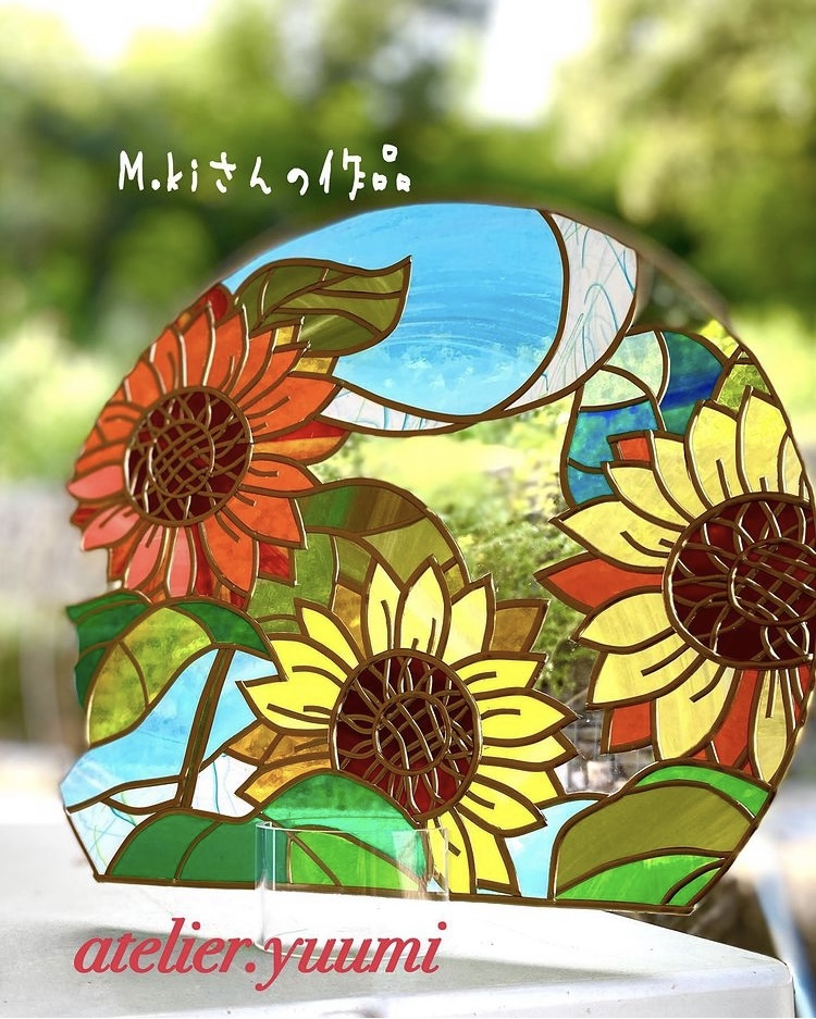 グラスアートはリード線やフィルムの色が沢山あり、重ねて自分好みの色を作ることもできるので、同じものを作られても、それぞれ個性が出て、素敵な作品に仕上がります。