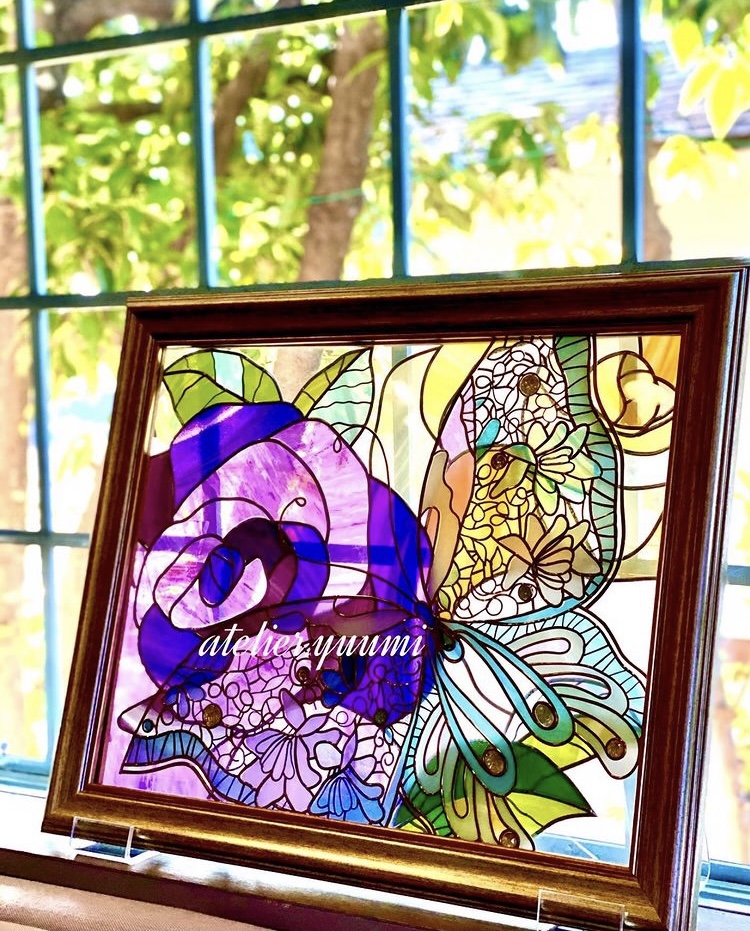グラスアートはステンドグラスの雰囲気をそのままに、フィルムとリード線を切ったり貼ったりして手軽に楽しめるクラフトです。