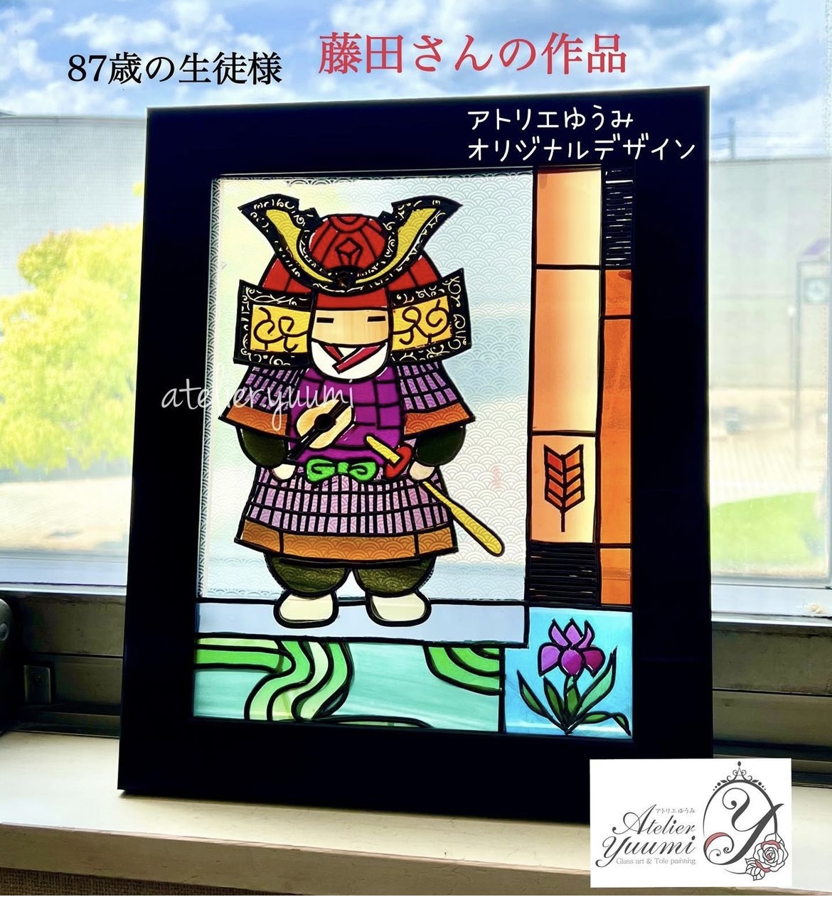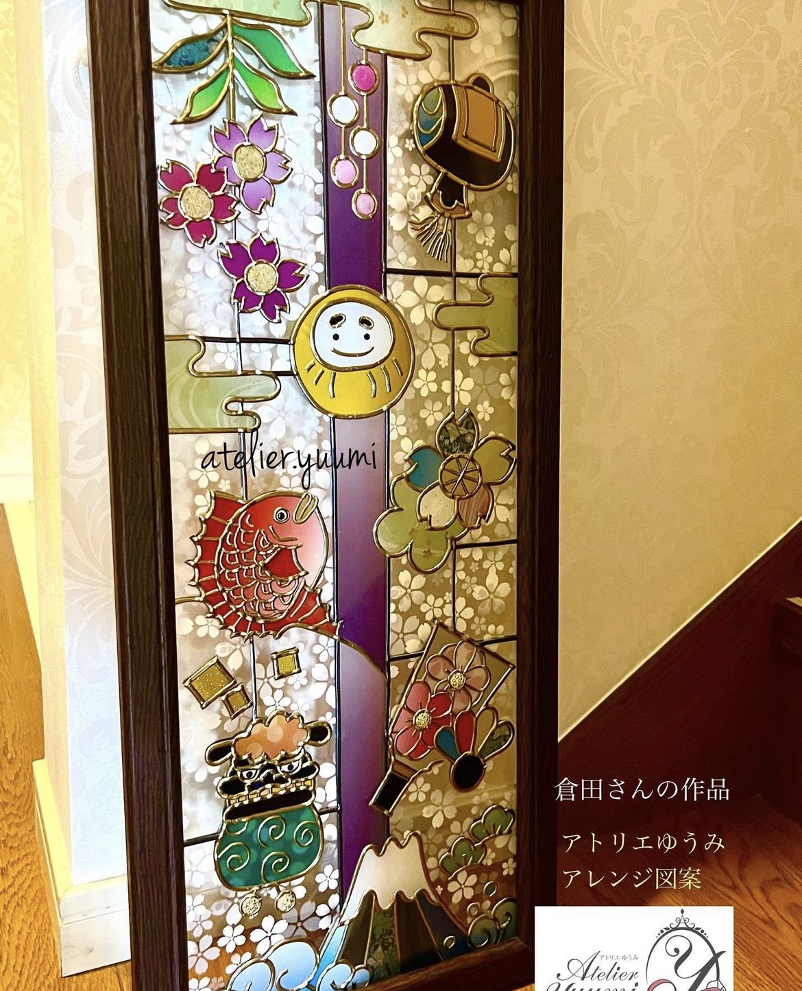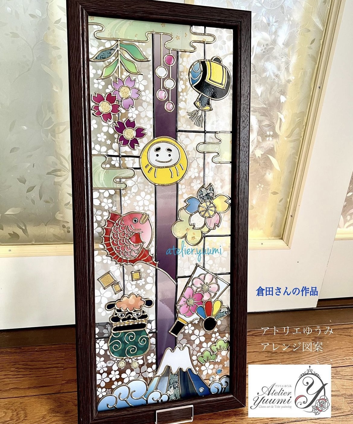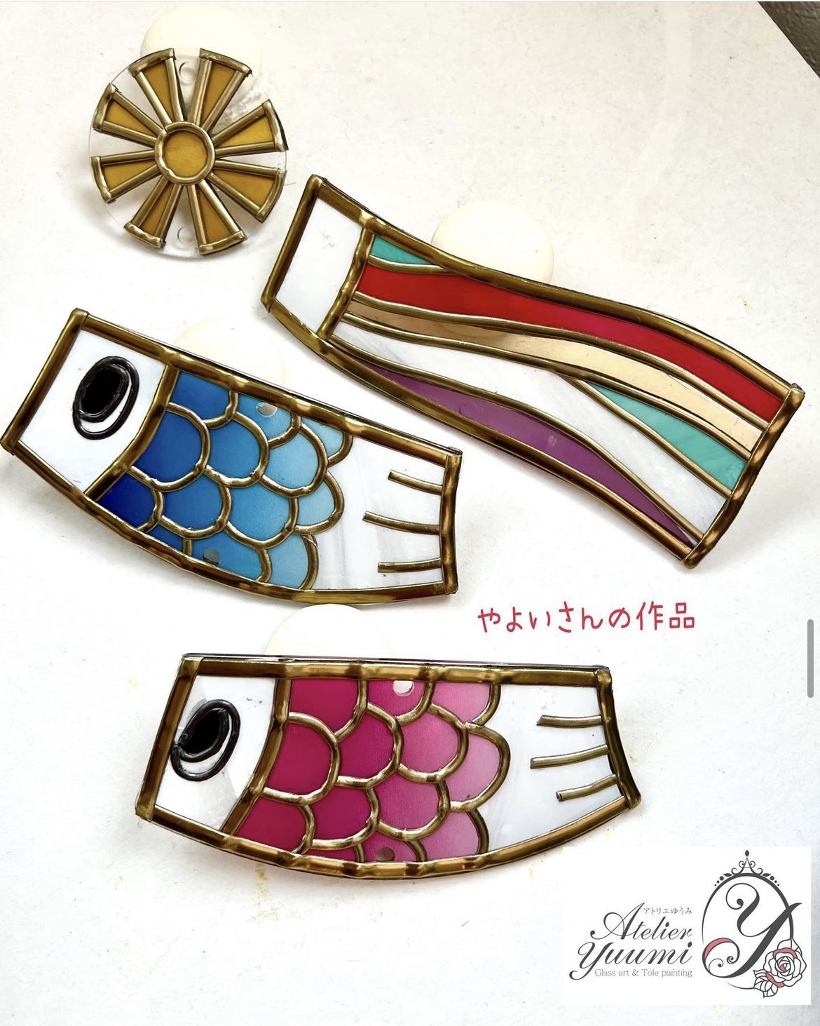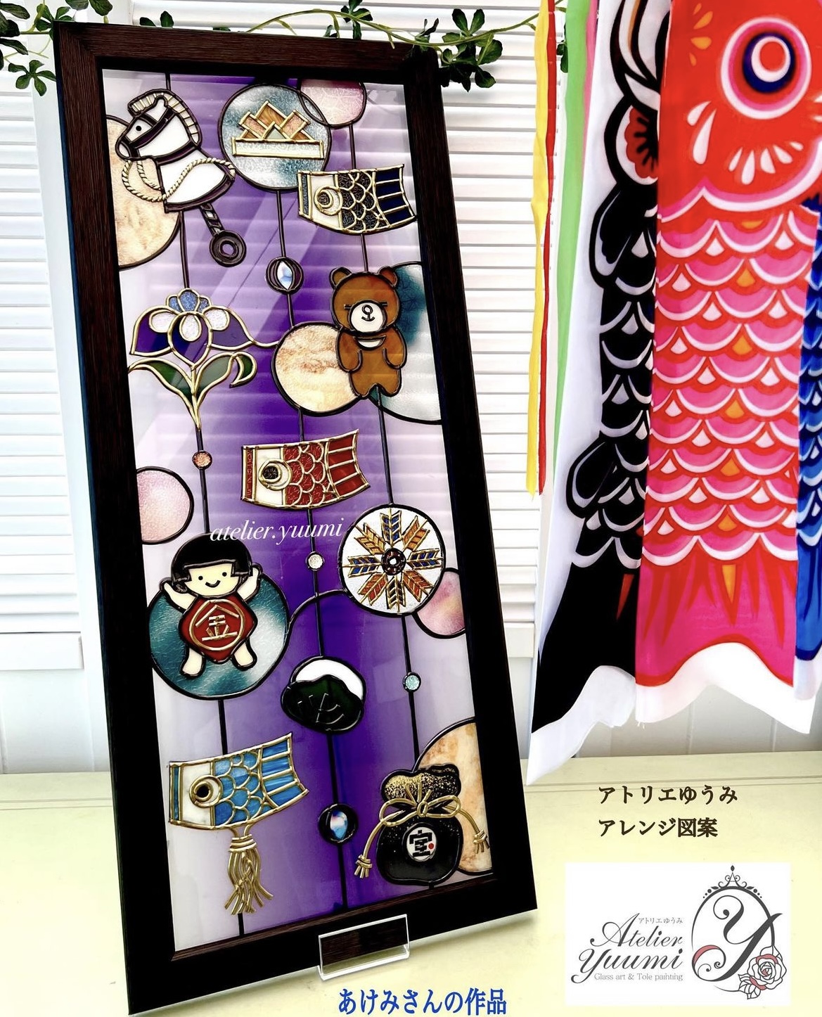 端午の節句の生徒様の作品です。季節に合わせた毎年の飾り付けにグラスアートは最適です。お部屋の飾りを変えるだけで、一気に雰囲気が出ます。