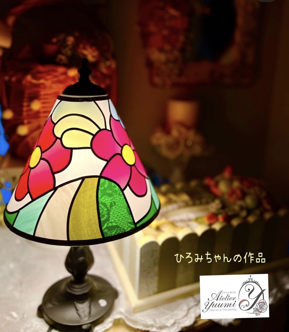 次の生徒様作品はカリキュラムの中にあるグラスアートのランプです。ランプは生徒のみなさんが作りたいと思われる作品の1つです。